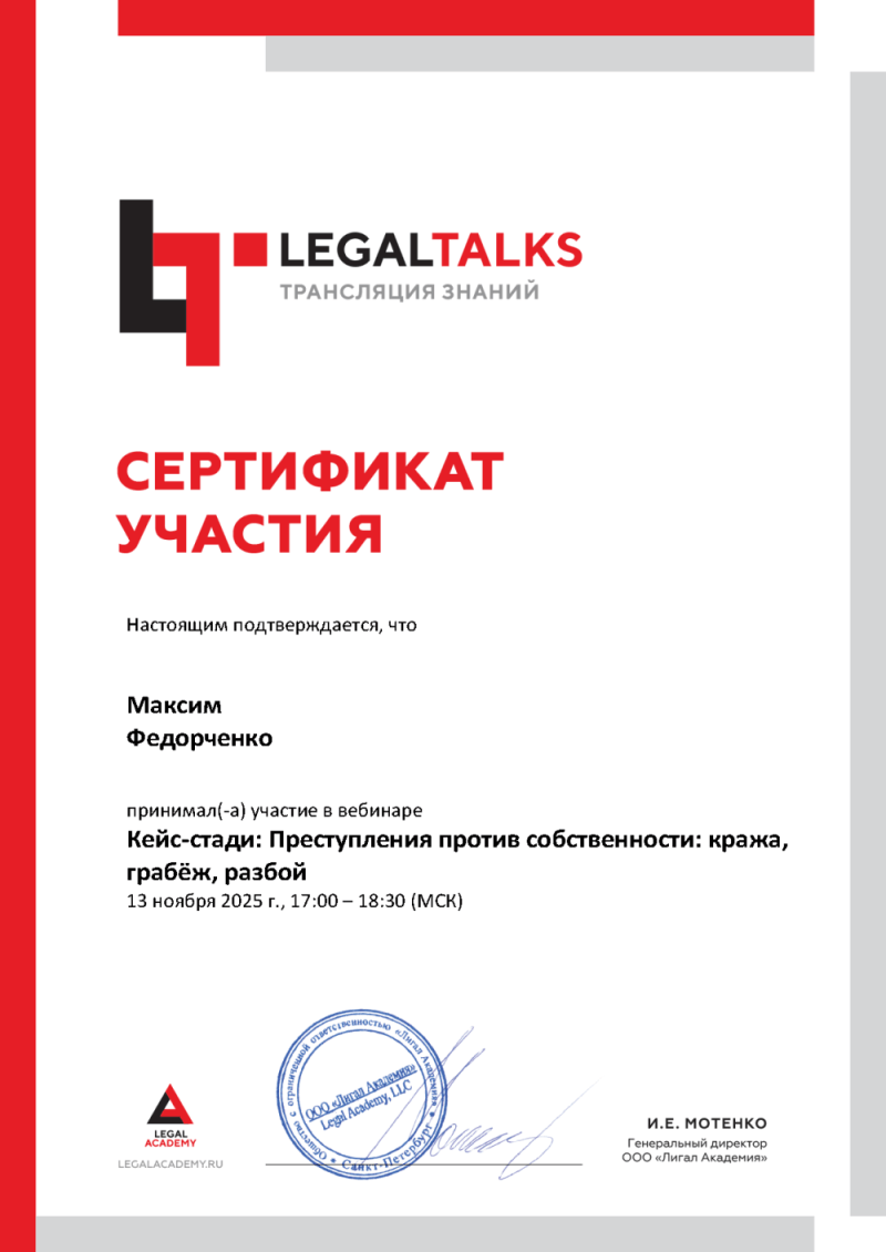 Более 14 лет опыта представления интересов по уголовным, гражданским, наследственным, жилищным, трудовым делам.